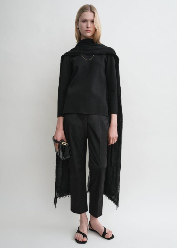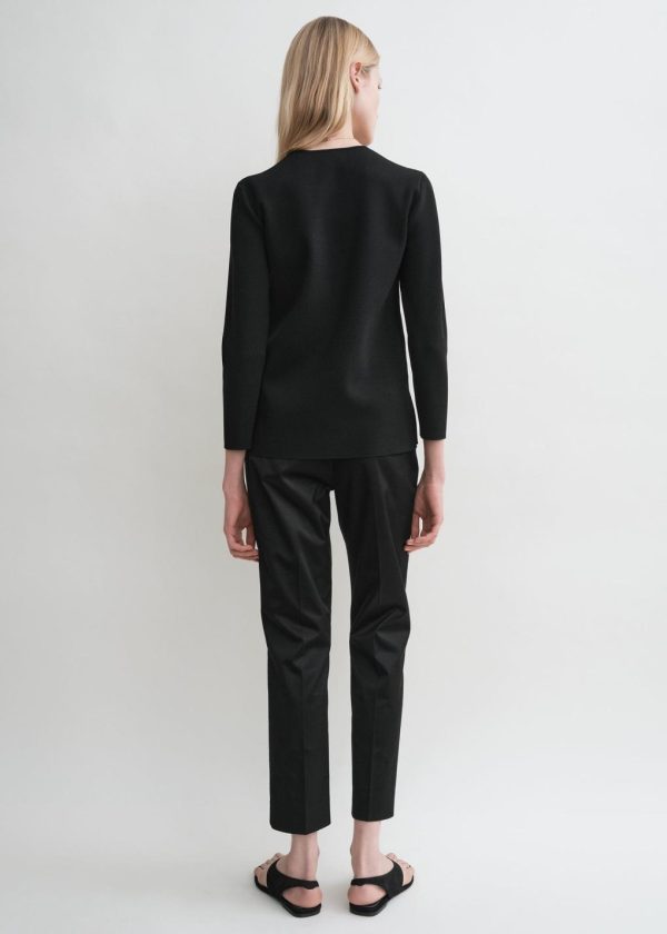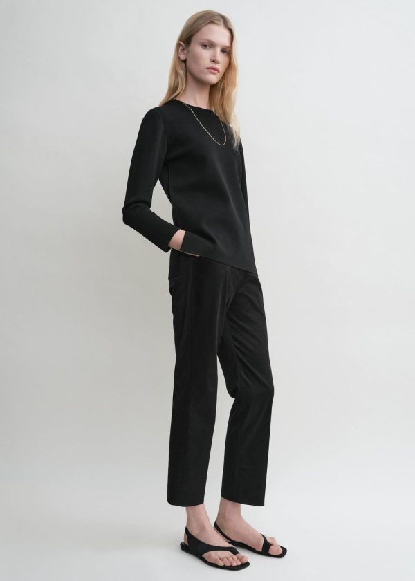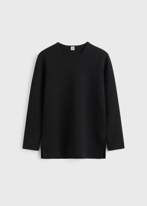 TOTEME top knitted from stretch, compact jersey for a flattering fit. It has a crew neckline and a slim silhouette with cropped long sleeves, making it a versatile styling piece. Team it with trousers and sandals to meet a friend for coffee.