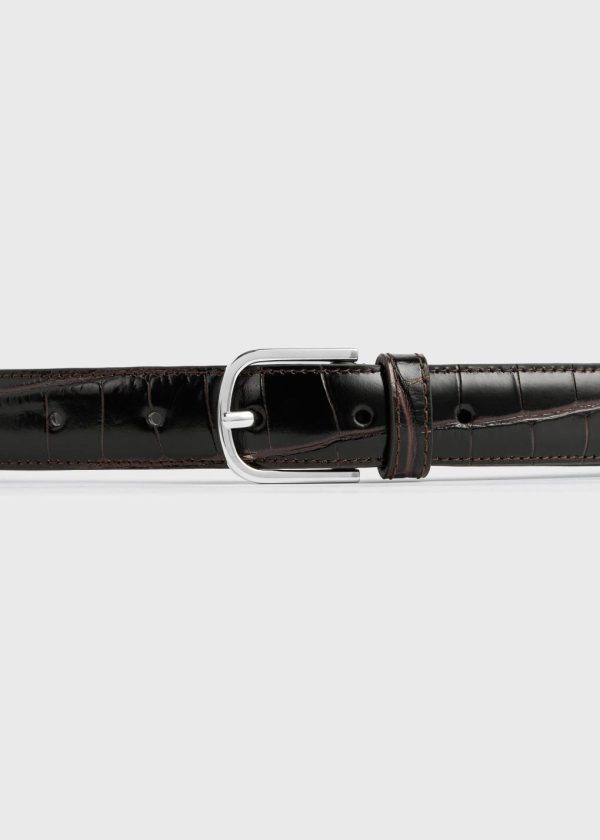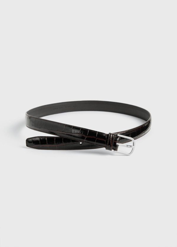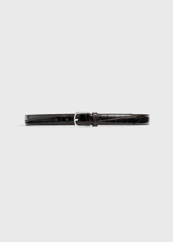 Designer’s note: “A classic slim belt can elevate any piece, and we chose this emblematic TOTEME accessory, embossed with our signature croco pattern, to add texture to our Garderob curation. Cinch it over black separates for contrast.”
