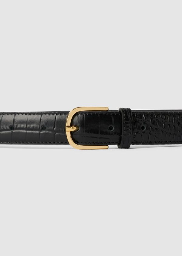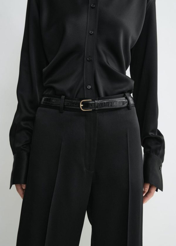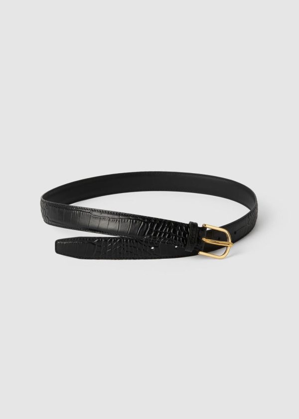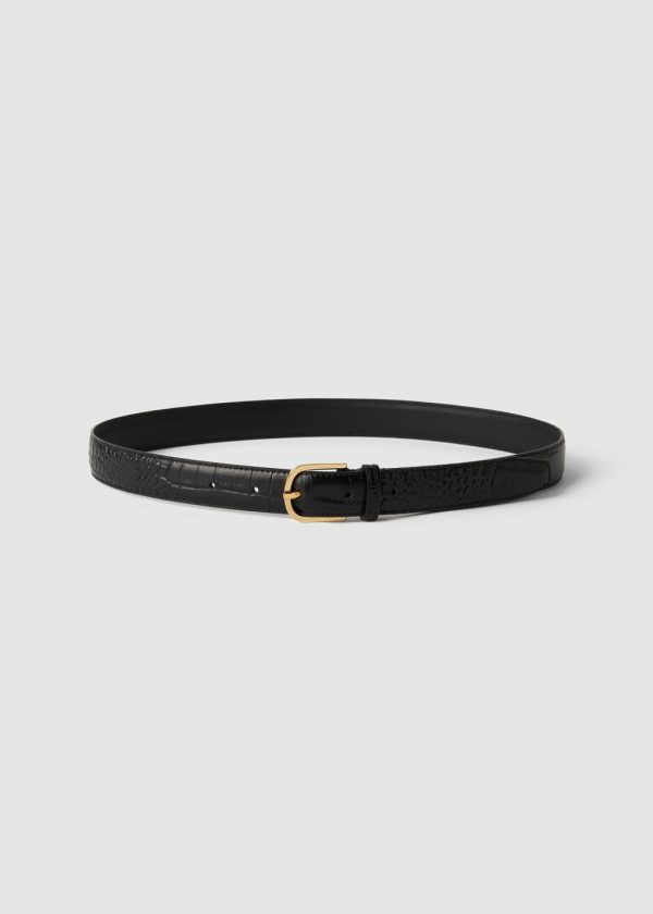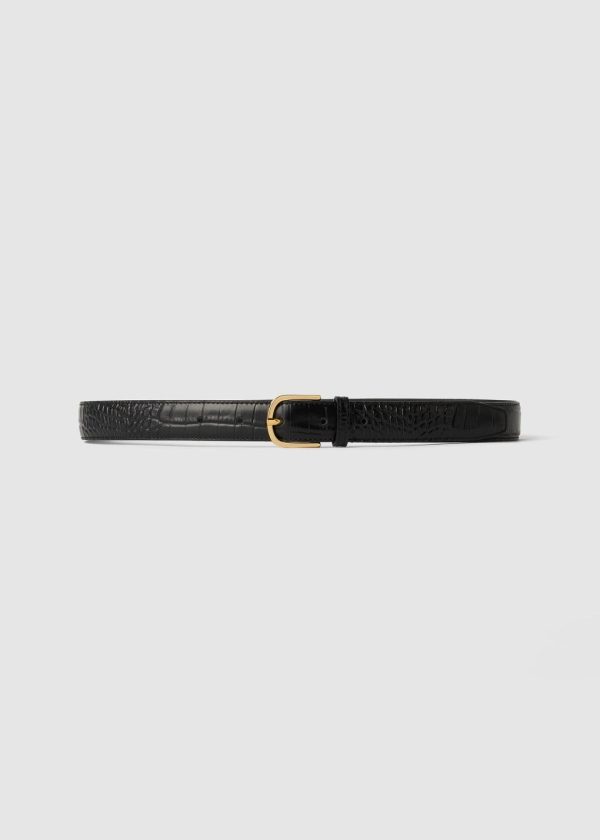 Women TOTEME Small Leather Accessories | Slim Croco-embossed Trouser Belt Black