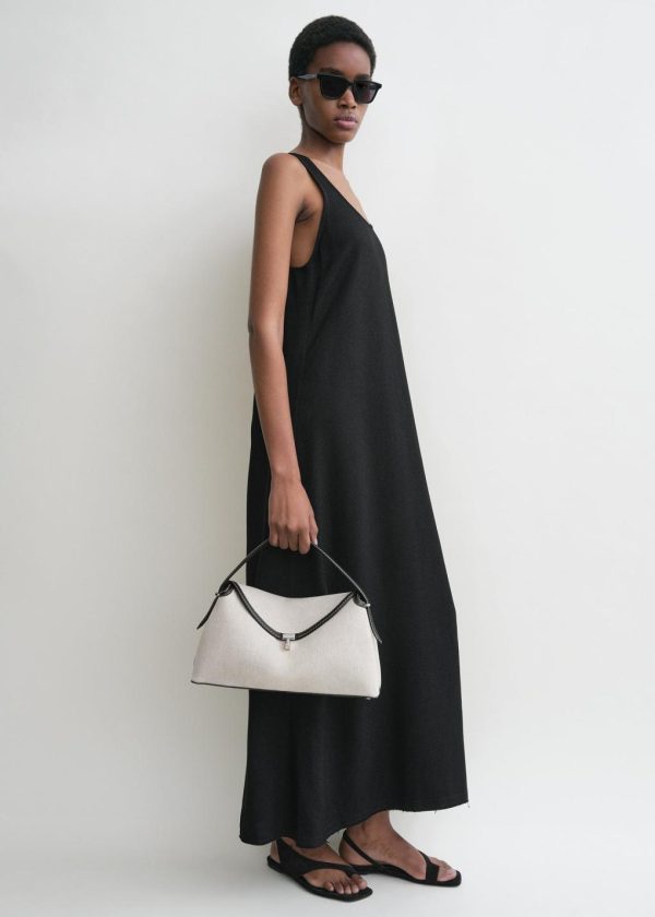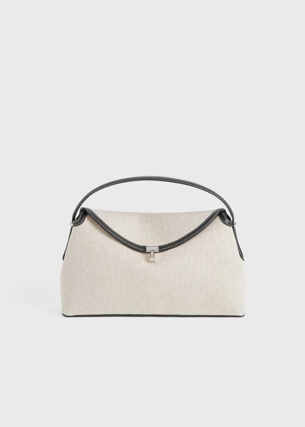 Everyday TOTEME bag outlined with a curved flap that complements the shape of the arm. It is crafted in Italy from cotton-blend canvas trimmed with black leather and a silver-tone metal T-Lock, then fitted with two internal slip pockets. Carry it from the top handle or from the detachable and adjustable strap for diffe