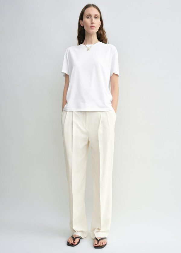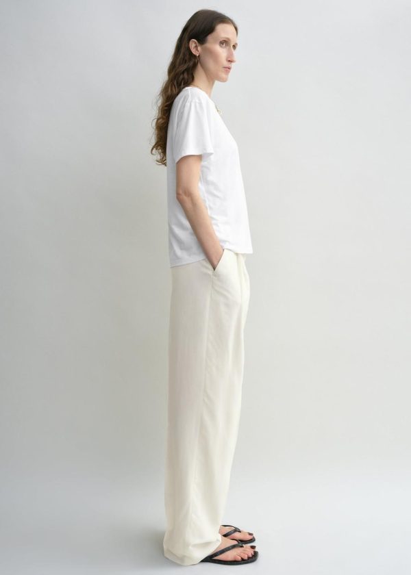 Designer’s note: “The TOTEME Garderob tee has a relaxed silhouette and petite proportions. To enhance its classic appeal, it’s crafted from light jersey that’s washed for a soft, lived-in feel, wrapping the body with a sense of intimacy and familiarity. We like pairing it with a fine chain to complement the simple crew