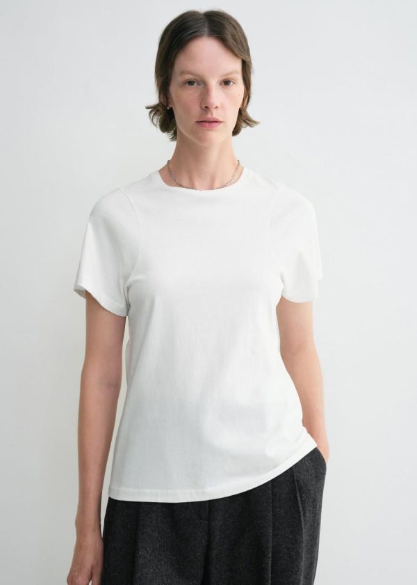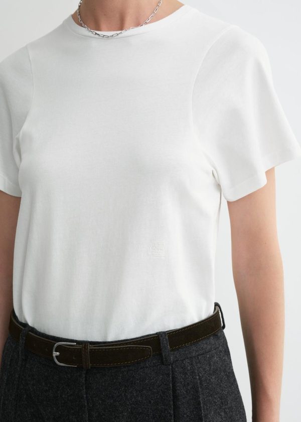 Signature TOTEME T-shirt made in Portugal from soft, light and fresh organic-cotton jersey. It is designed for a relaxed slim fit with a round neck, curved armhole seams adding structure to the sleeves and an in-tone monogram embroidery at the front. Team it with anything from relaxed jeans to tailored trousers.